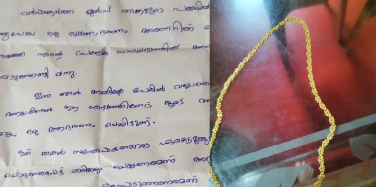 വര്ഷങ്ങള്ക്ക് മുന്പ് ആശുപത്രിയിലേക്കുള്ള ഒരു യാത്രയിലായിരുന്നു ഖദീജയ്ക്ക് തന്റെ സ്വർണമാല നഷ്ടമായത്. അന്ന് ഭര്ത്താവും ഖദീജയും ചേര്ന്ന് മാല അന്വേഷിച്ച് ഏറെ നടന്നെങ്കിലും നിരാശയായിരുന്നു ഫലം. എന്നാല് മാലയെ പറ്റിയെല്ലാം മറന്നിരിക്കെ, കഴിഞ്ഞ ദിവസം ഒരു കൊറിയറുണ്ടെന്ന് പറഞ്ഞ് മകന് ഇബ്രാഹിമിന് ഒരു കോള് വന്നു. വീട്ടില് നിന്ന് എന്തെങ്കിലും ഓര്ഡര് ചെയ്തതാവും എന്ന് കരുതി ചെന്ന ഇബ്രാഹിമിന് ലഭിച്ചത് ഒരു കത്തും സ്വര്ണമാലയുമായിരുന്നു.