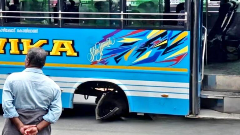 കാട്ടിലപ്പീടികയിൽ ഓടിക്കൊണ്ടിരുന്ന സ്വകാര്യ ബസിന്റെ ടയര്‍ ഊരിത്തെറിച്ചു; ഒഴിവായത് വന്‍ ദുരന്തം