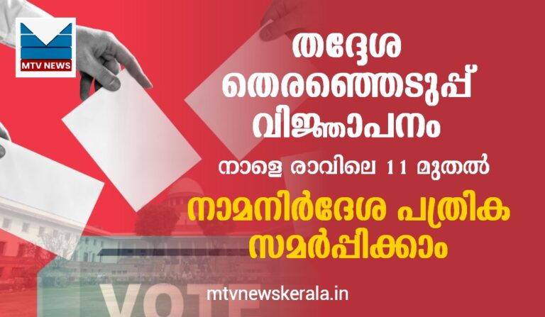 തദ്ദേശ തെരഞ്ഞെടുപ്പ് വിജ്ഞാപനം നാളെ: രാവിലെ 11 മുതല് നാമനിര്ദേശ പത്രിക സമര്പ്പിക്കാം.