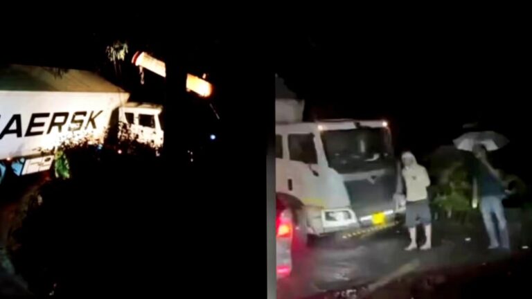 താമരശ്ശേരി ചുരം ആറാം വളവിൽ ഇന്നും കണ്ടയ്നനർ ലോറി കുടുങ്ങി; അപകടം വളവിൽ നിന്നും തിരിക്കുമ്പോൾ ഒരു വശത്തേക്ക് ചരിഞ്ഞ്