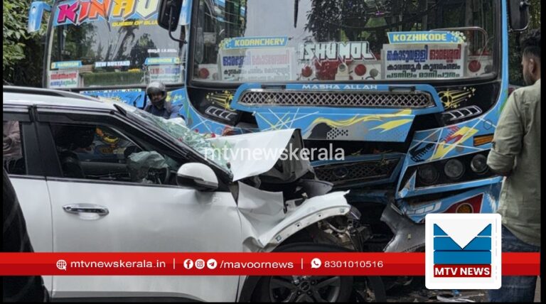 പടനിലത്ത് സ്വകാര്യ ബസും കാറും കൂട്ടിയിടിച്ച് അപകടം.