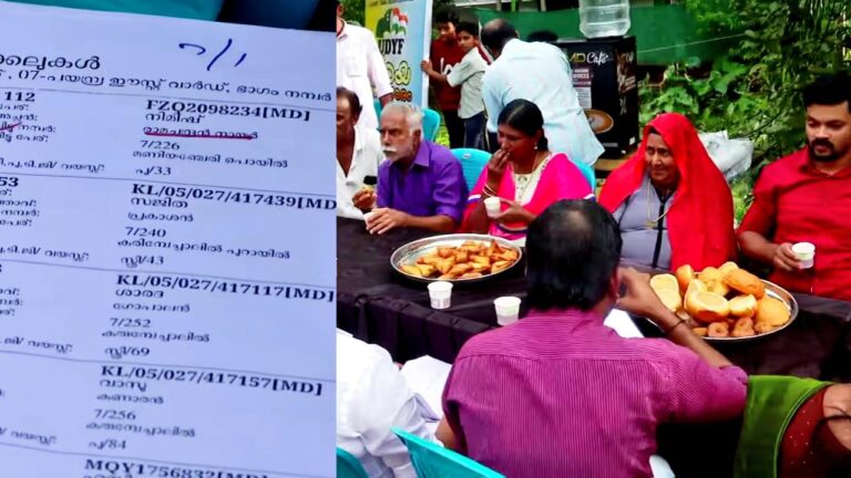 വോട്ടർമാരെ അനധികൃതമായി വെട്ടിയെന്ന് യുഡിഎഫ്, പരേതർക്കൊപ്പം ചായ കുടിച്ച് പ്രതിഷേധം