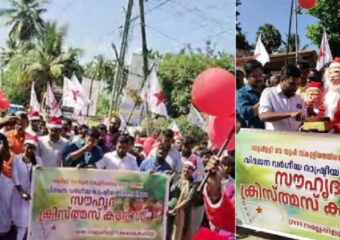 പാലക്കാട് നല്ലേപ്പുള്ളി ഗവണ്മെന്റ് യുപി സ്കൂളിൽ ക്രിസ്മസ് ആഘോഷം വിശ്വഹിന്ദു പരിഷത്ത് പ്രവർത്തകർ തടഞ്ഞ സംഭവത്തിൽ ഡി വൈ എഫ് ഐ ചിറ്റൂർ ബ്ലോക്ക് കമ്മിറ്റിയുടെ നേതൃത്വത്തിൽ സൗഹൃദ ക്രിസ്മസ് കരോൾ സംഘടിപ്പിച്ചു. സ്കൂൾ പരിസരത്ത് നിന്ന് ആരംഭിച്ച സൗഹൃദ ക്രിസ്മസ് കരോൾ ഡി...