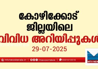 കോഴിക്കോട് : ജില്ലാ പഞ്ചായത്തുകളിലെ വാര്ഡ് വിഭജന കരട് നിർദ്ദേശങ്ങൾ സംബന്ധിച്ച് പരാതി സമർപ്പിച്ചവർക്കായി ജൂലൈ 31ന് തിരുവനന്തപുരം തൈക്കാട് പി.ഡബ്ല്യൂ.ഡി റെസ്റ്റ്ഹൗസിൽ ഡീലിമിറ്റേഷൻ കമ്മീഷൻ ഹിയറിങ് നടത്തും. രാവിലെ 9.30ന് കോഴിക്കോട്, തൃശൂർ, പാലക്കാട്, മലപ്പുറം, വയനാട്, കണ്ണൂർ, കാസർകോട് ജില്ലകളിലെ...