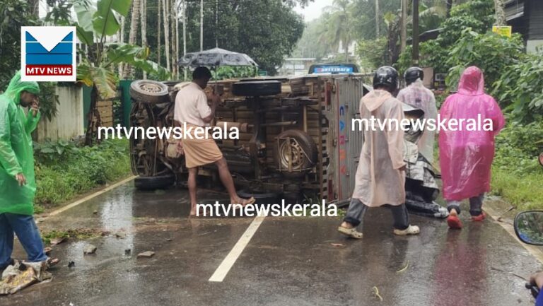 മുക്കം; കുമാരനെല്ലൂർ കാരമൂല റോഡിൽ മിനി പിക്കപ്പ് വാൻ നിയന്ത്രണം വിട്ട് മറിഞ്ഞ് അപകടം.